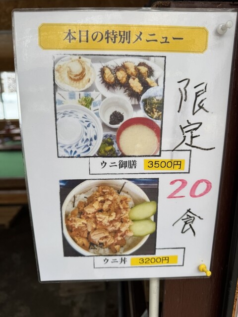 回転1時間前ぐらいにつくと、採れたてのウニを軒先で向いてました。