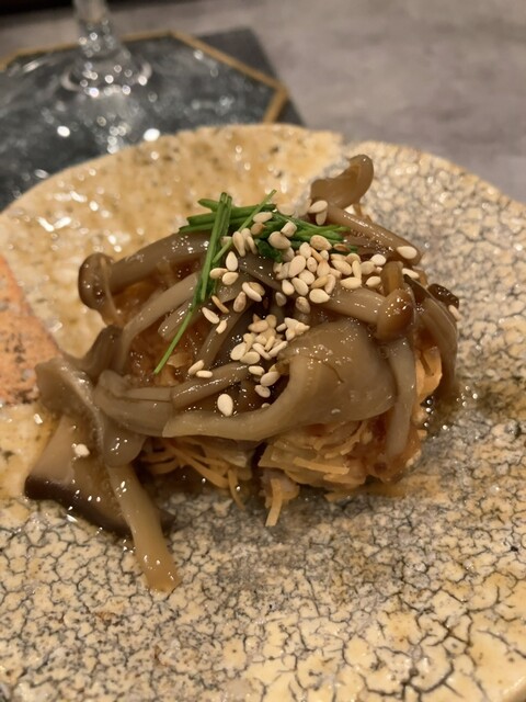 2)ポテトサラダ、きたあかり(かな?)の下にテクスチャーの違った2種類のポテトサラダ、ほんのり香るトリュフオイルで色々な食感を楽しめる一品でした。
