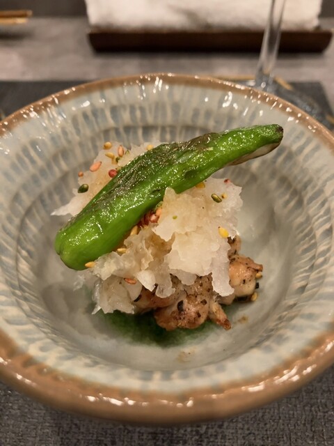 3)ハツ、おろし生姜でいただくハツははじめてでしたが、ジューシーなハツとの相性は抜群でした。