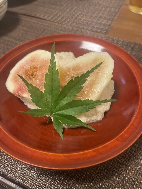 ある日のおまかせ2000円3品目。白和えといちじく。