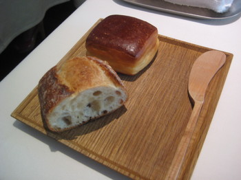 バターが乗っているお皿(大理石でできているのかな?)もしっかり冷やされてます。