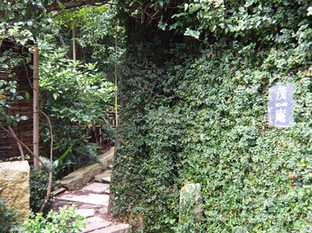 住宅の途中から山道へ入っていきます。ところどころに(隠れた?)茂庵の看板が見えます。
