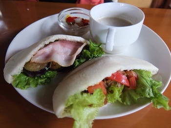 ランチメニューは、ピタパサンドと月替わりのメニューがあります。