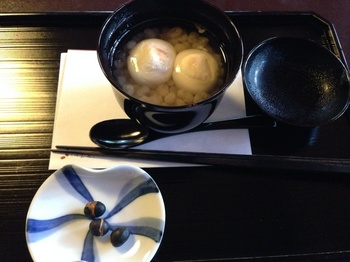 上品な甘さと焼き餅が香ばしくて美味しい。白小豆は珍しいし、これは逸品ですね。