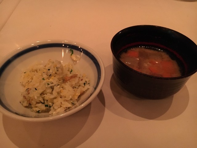 〆はシラスのチャーハンとお味噌汁。