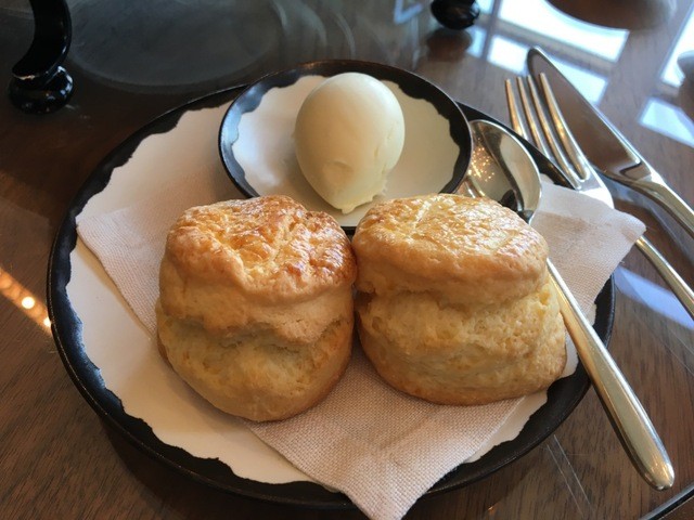 スコーンは二つともプレーンのお味で、クロテッドクリームがたっぷりついています。