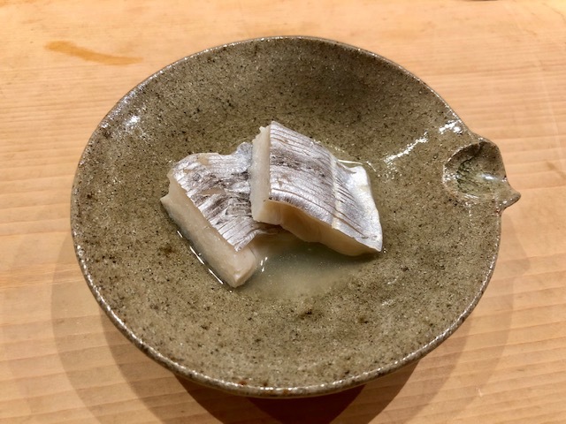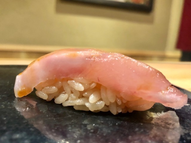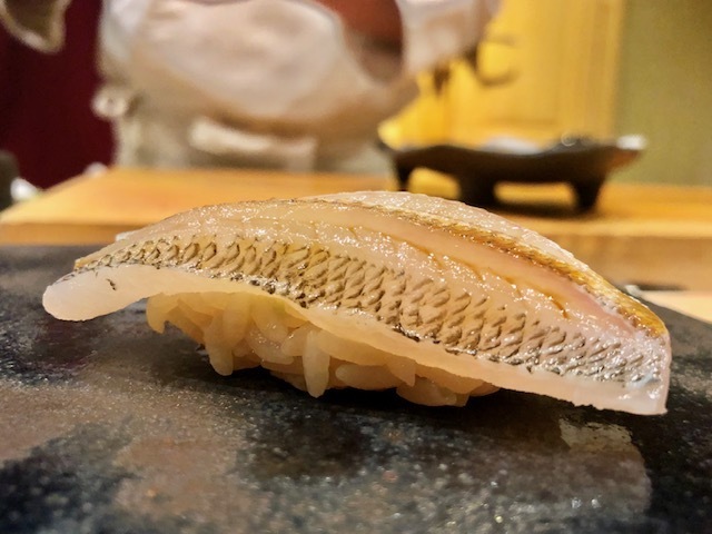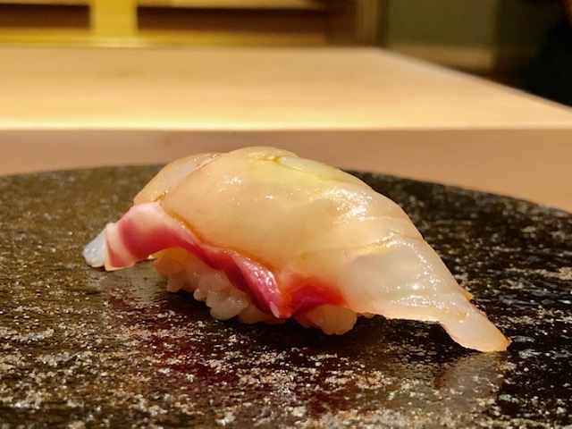 肝ソースのほろ苦さの後、身の甘味が一気に駆け抜けていく感じ。素晴らしい一貫。