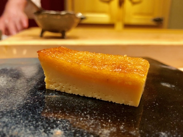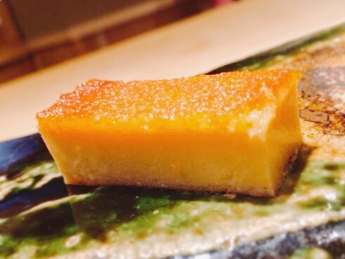 カステラとプリンのハイブリッドな玉。黒糖焼酎のコクとキレがいい味出しています。