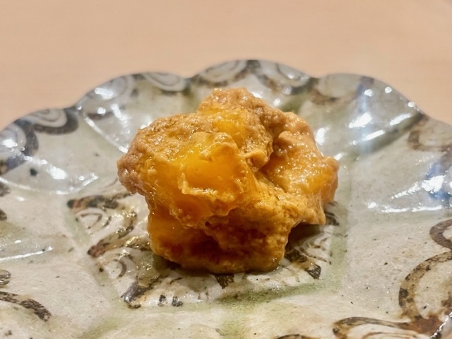 長崎県対馬産。秋になったということで煮つめでの仕立てになったようです。口溶けはさらりとして、旨味は濃密。