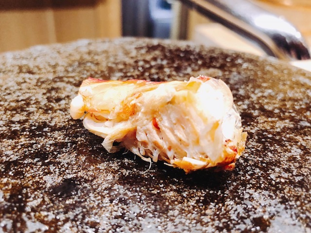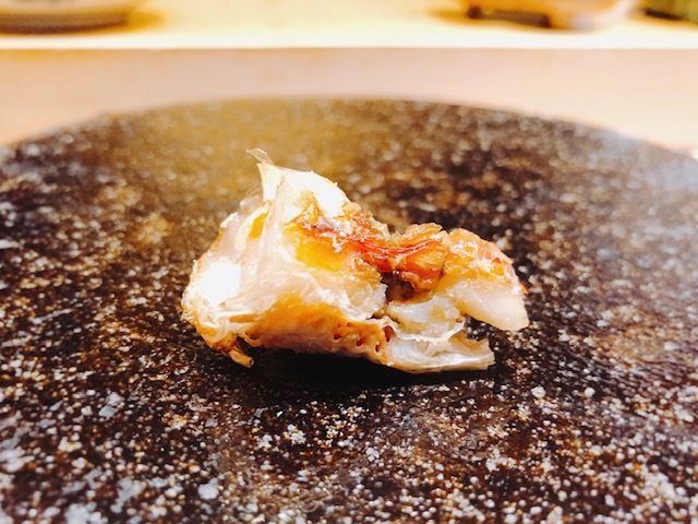 先程の車海老の頭をカリカリに炙ったもの。海老好きにはたまらない演出です。