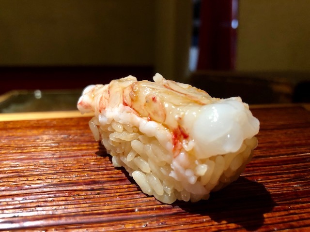 「コレが海老?」と驚くほどに口に入れた瞬間になくなる海老。口に残るのはシャリの酸味で輪郭が際立った極上の甘味が広がります。