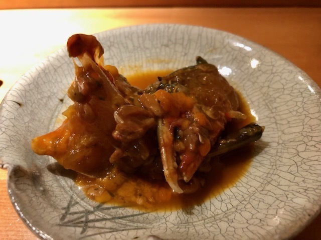 活け渡蟹ならではのとろりとした食感に蟹の甘味と旨味、そして山椒の鮮烈さがひと口毎に駆け巡ります。