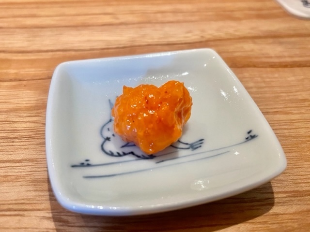 ビッシリとついたワタの甘味が最高に美味しい。とろけるような食感も固めのシャリとよく合います。