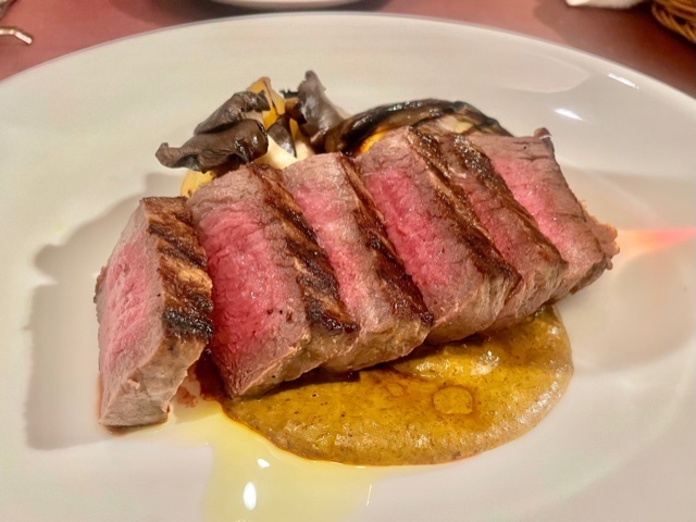 メインはジビエもあったのですが、久しぶりに牛にしてみました。青森八甲田山麓で放牧されている日本短角牛の一種で「幻の赤べこ」と呼ばれているそうで、やはり「Osteria Austro」は牛も侮れない。ソースはアカヤマドリというキノコで旨味が凄い。そして赤身の短角牛なので、確りと咀嚼できる肉質で溢れる旨味がたまらなく美味しい。
