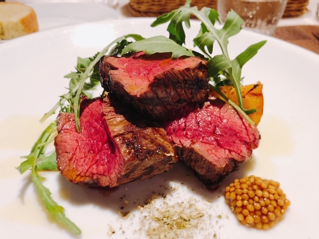 4センチ幅に切られた約400グラムくらいのTボーン。さすがのボリュームですが、そこは乳飲み仔牛。牛肉というと赤身ですが、乳飲み仔牛なので白っぽい肉なのも特徴的で、脂はさらりとして肉質はきめ細かく、筋でさえも柔らかく、味わいもどこかミルキー。実に美味しかったです。