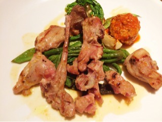 『野ウサギ』というと、ジビエの中でかなりの臭みがある食材として知られていますが、このお店ではそんなことは全くありません。内臓をキレイに取ってから、熟成させているとのことで、臭みがないのだそうです。味わいは鶏肉よりも味が濃く、余分な脂のないしっとりとした柔らかな肉質で、美味しい。臭みがなく、柔らかいからこそのグリルという調理法なのだそうです。