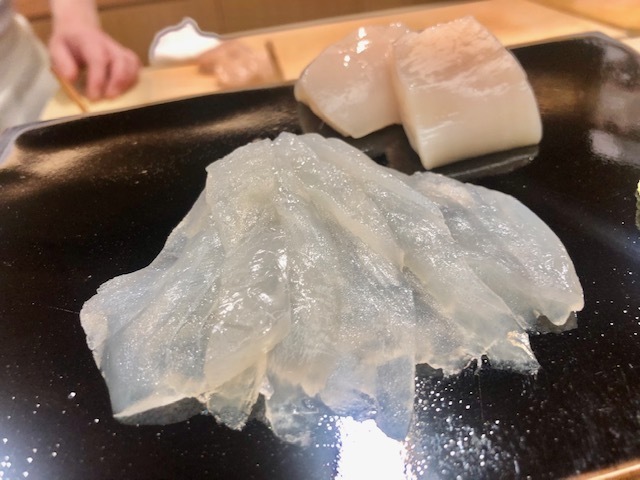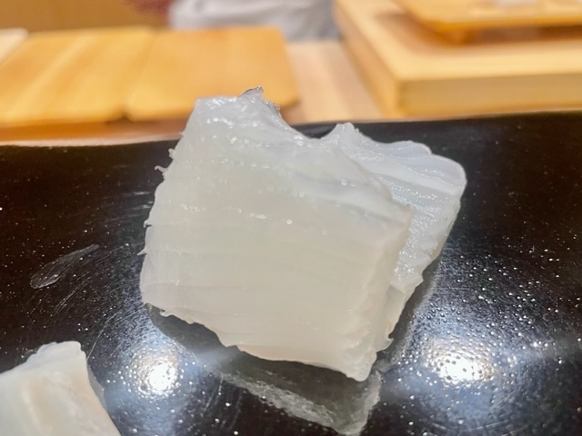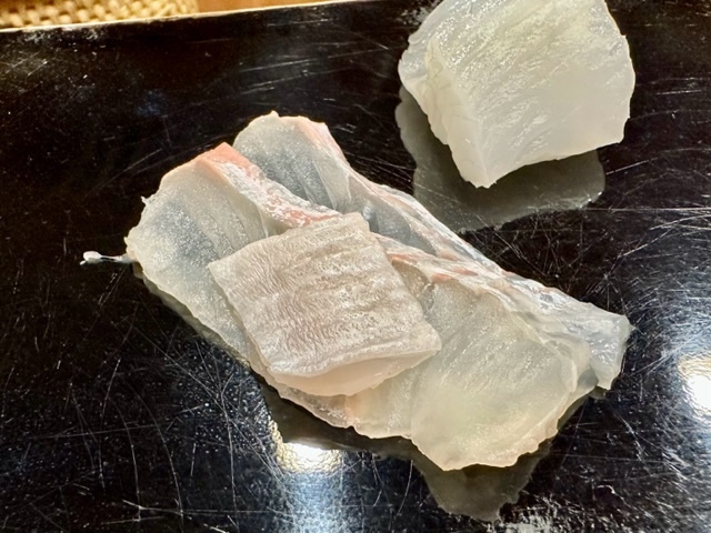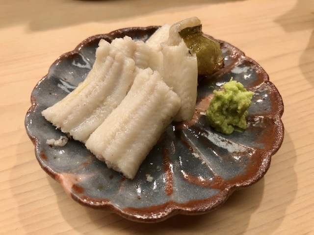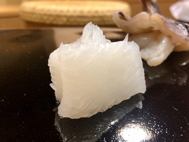 夏を告げる魚なので、もう終わりかな。白身ですが、なんですか?このコッテリとした身から溢れてくる脂は。素晴らしい。