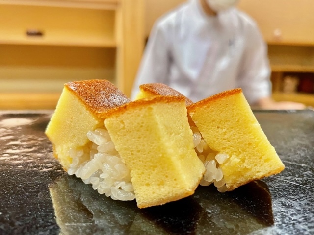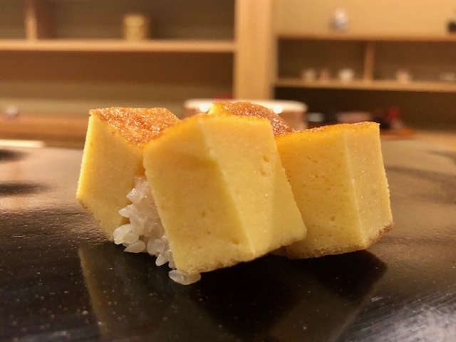 今回も握っていただきました。シャリの塩味で玉の甘味がよりはっきりと味わえます。