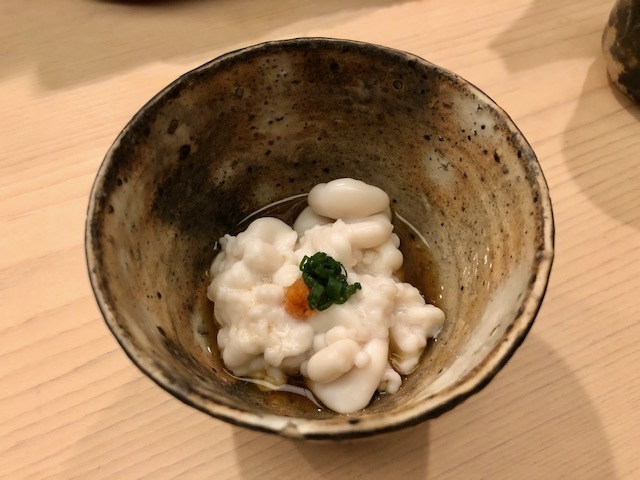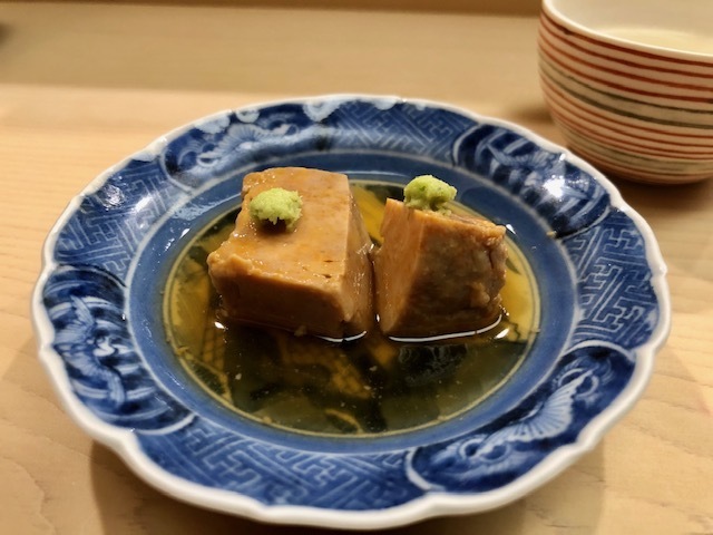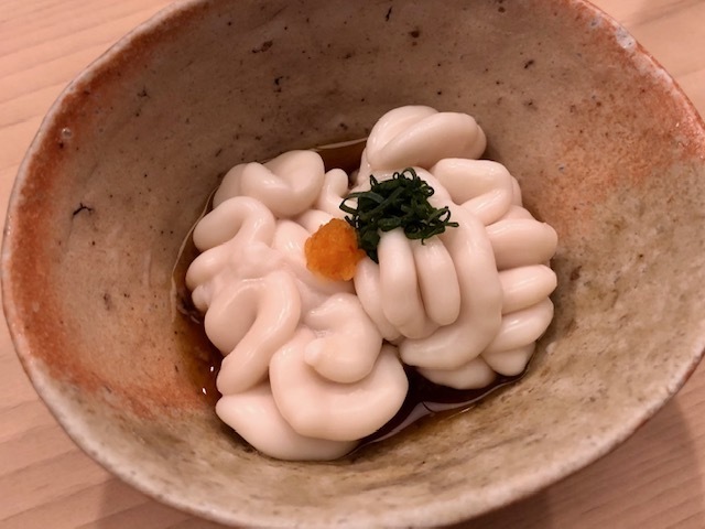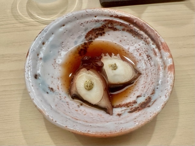 『柔らか煮』といっても、蛸の食感は残っており、その身を咀嚼すると溢れる旨味が凄い。やはり鮨店の蛸は侮れない。