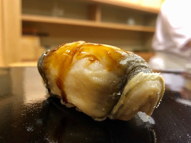 表面は仄かにパリッとしており、咀嚼する歯を覆うようなゼラチン質がねっとりと絡み、旨味と甘味が広がります。そして、食べ終えて鼻から抜ける穴子の香りが凄い。