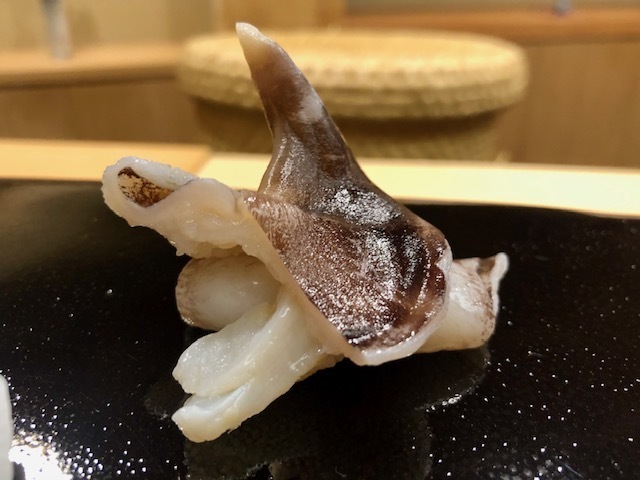 初めに酸をグッと感じ、追いかけるように小鰭のジューシーさがきます。そして、シャリの塩味で甘味が引き出されるよう。いつもながらに美味しい。