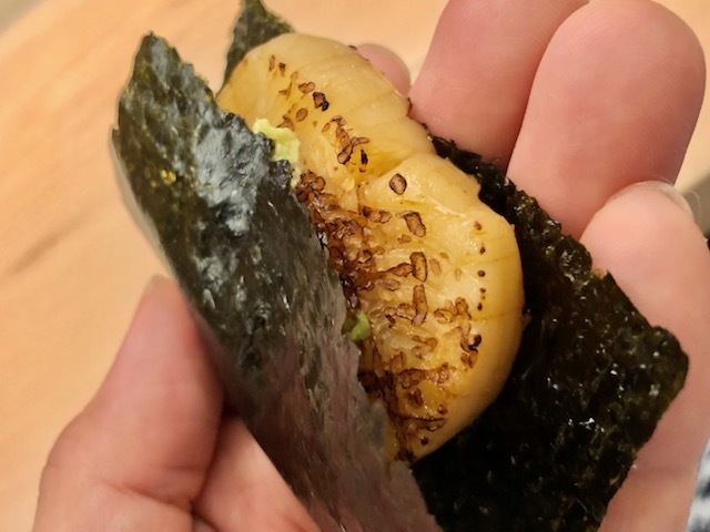 まず海苔の香りがぶわっとして、帆立の甘味、そしてそれらが一体となって口の中を支配します。