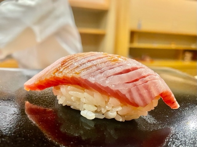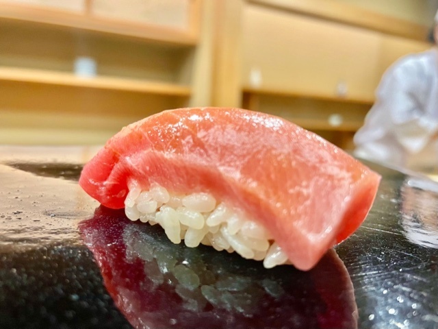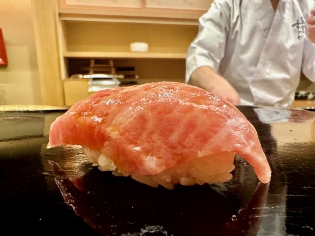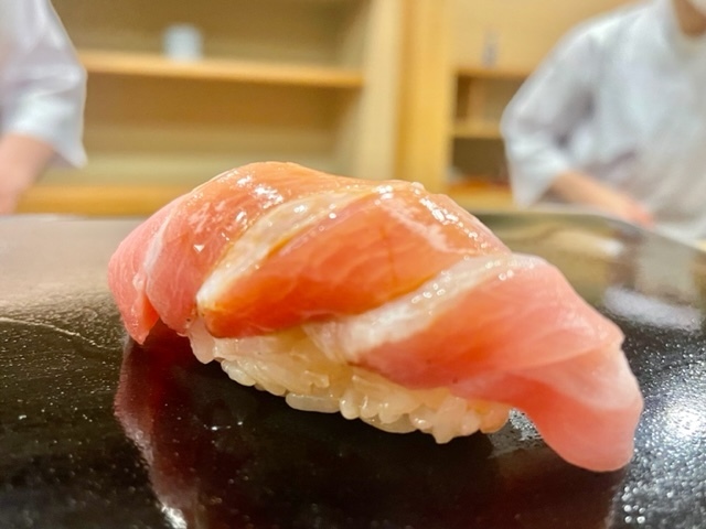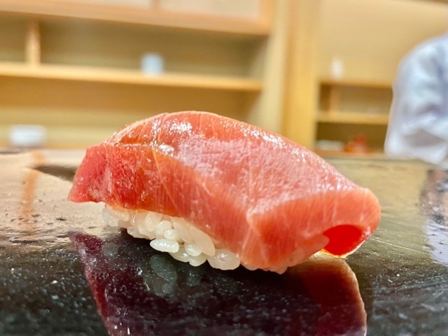 身のとろけ方、香りが1番映える部位。切りつけも厚くて、口の中での鮪の存在感が圧倒的で美味しい。