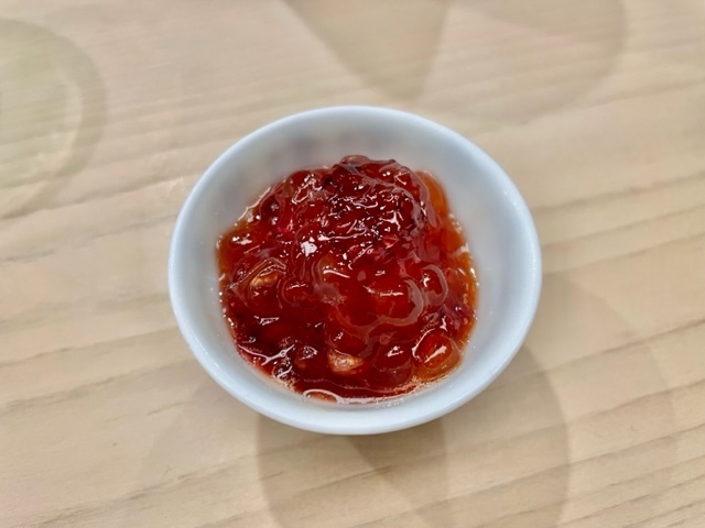 いくらよりもひと回り小さい鱒子。口に入れると、味噌の甘味が広がり、プチッと弾けると鱒子の旨味が追いかけるように広がります。ご飯にも絶対に合う!