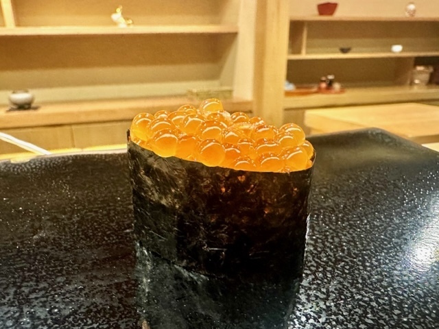 皮は薄く、弾けるというよりはとける感じ。いくら本来の旨味が濃く、海苔の香りも映えます。