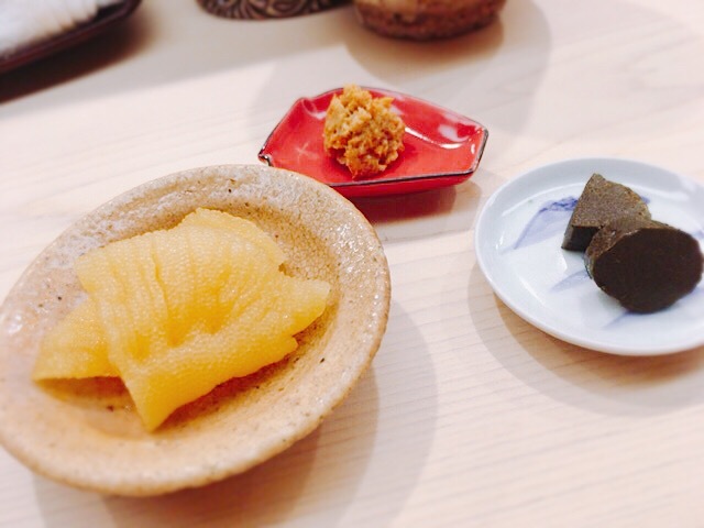 鮃は青森県産、泥障烏賊は神奈川県佐島産。鮃はモチモチとした食感で、咀嚼の度に旨味と甘味が素晴らしい。泥障烏賊は極上のねっとり感があり、舌にからみつくような食感と生姜の辛味の中でより甘味が溢れます。