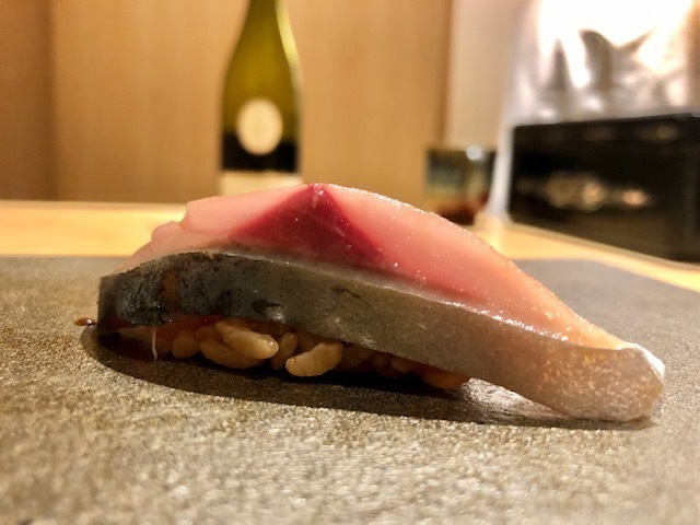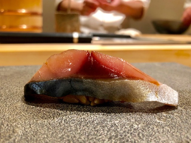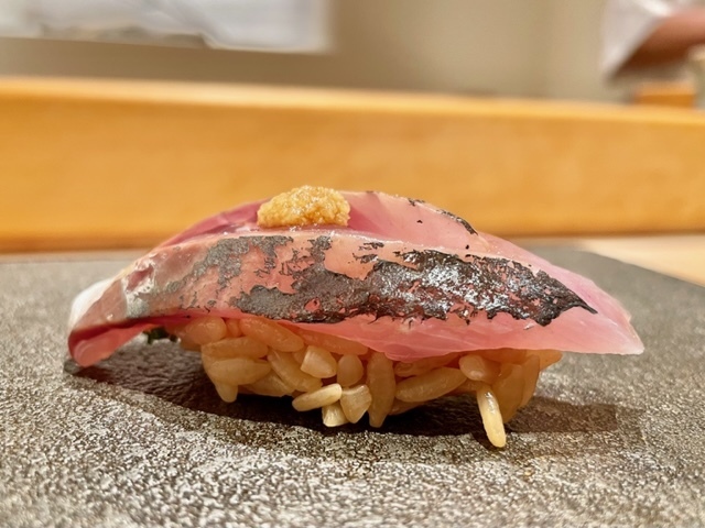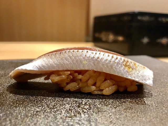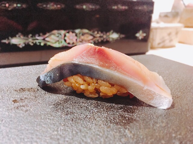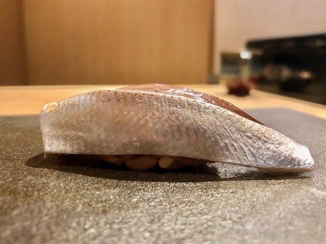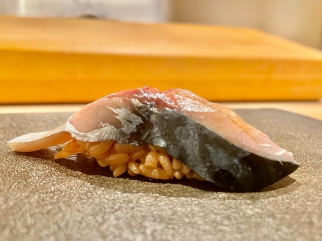 鮪にも決して負けないような口溶けの良さと旨味。青魚の香りも素晴らしく、とても美味しい。