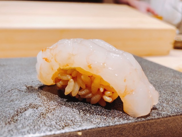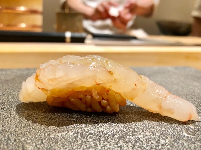 富山産。シャリの塩味でより白海老の甘味が際立ちます。