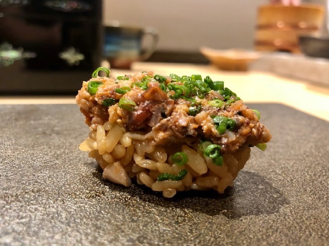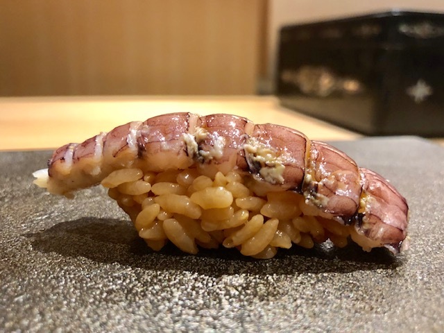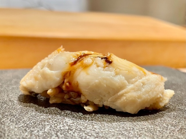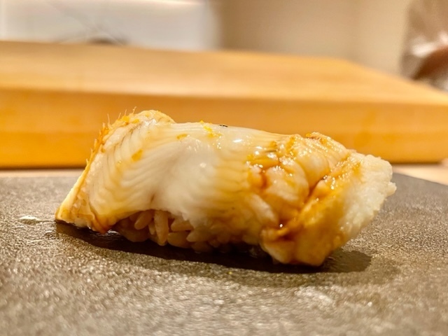 大好きな腹の部位。「鮨 とかみ」では塩と煮つめの2種でしたが、煮つめのみ。煮つめは少量なので、穴子の味わいも分かります。
