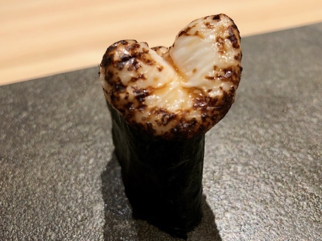 片側を軽く炙り、裏返して握っています。こっちの方が甘みをより感じますよね。