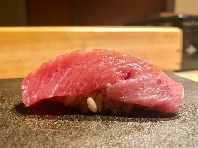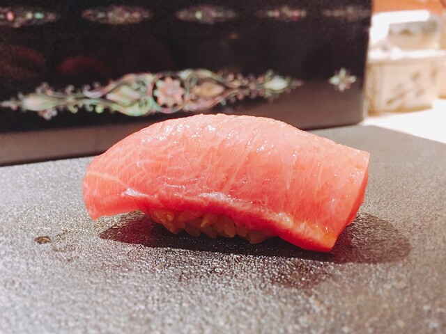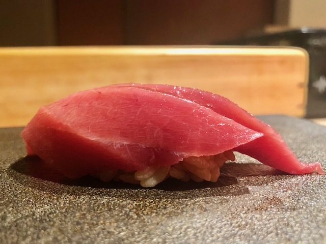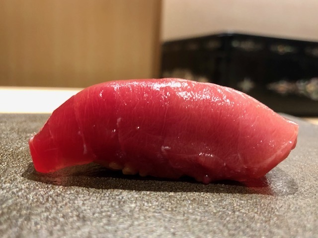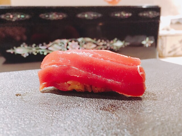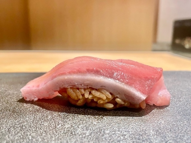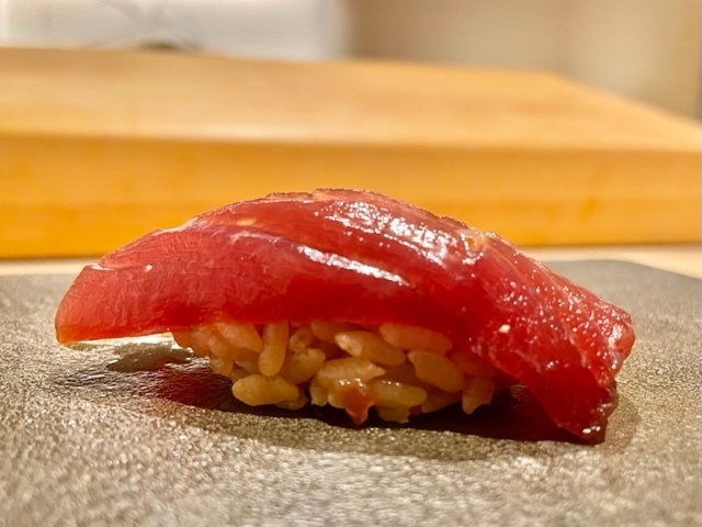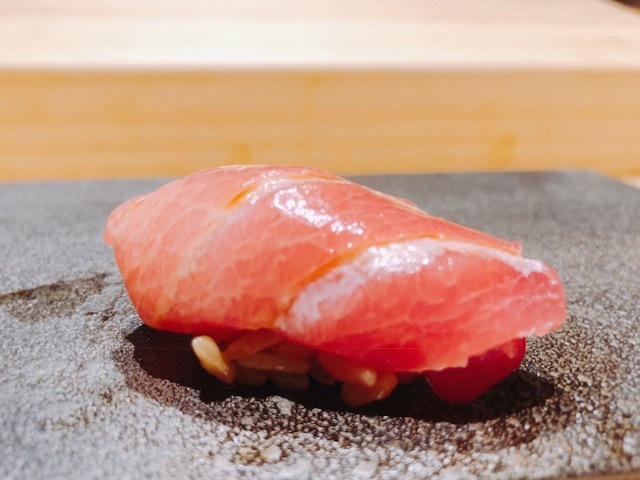 青森県大間産。漬けにすることで、旨味が凝縮することがよく分かる味わい。舌触りもシルキーな感じで良い。