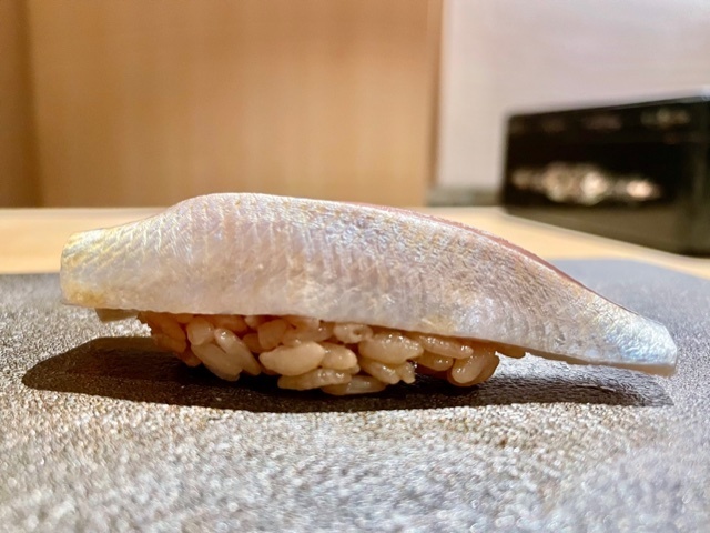 あまり見かけない種ですが、れっきとした江戸前の種。確りと脂コントロールされていて、旨味が凝縮しており、最後にふわりと昆布が香ります。