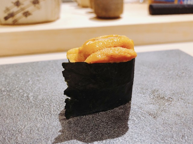 さらりと供される雲丹は、いつもながらに美味しい。濃厚でクリーミーな甘味があり、海苔の香りも映えて美味しい。
