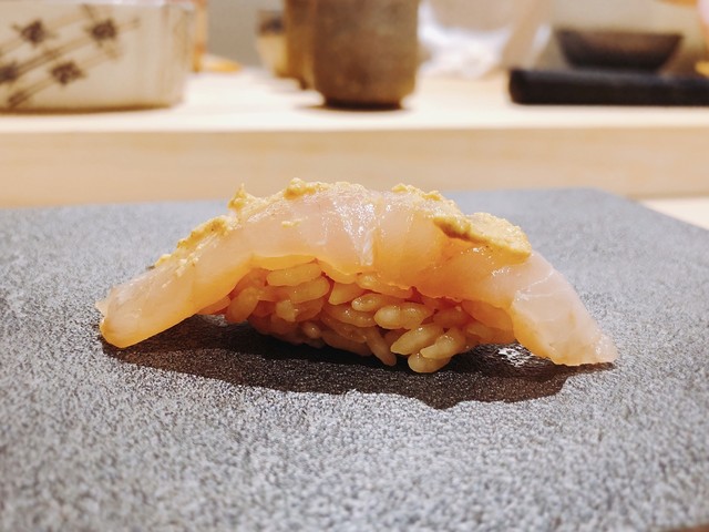 周りを酢で〆ているそうで、それ以外は液体?と思えるほどの口溶け。香りもよく、素晴らしい。