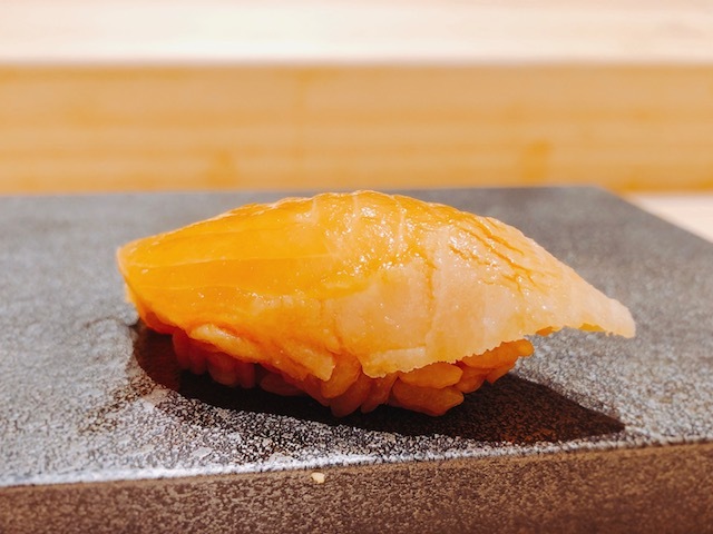 口に入れた瞬間に液体に変わるようないくら。柚子も振っていないので、純粋で濃密ないくらの旨味が楽しめます。