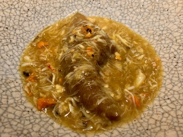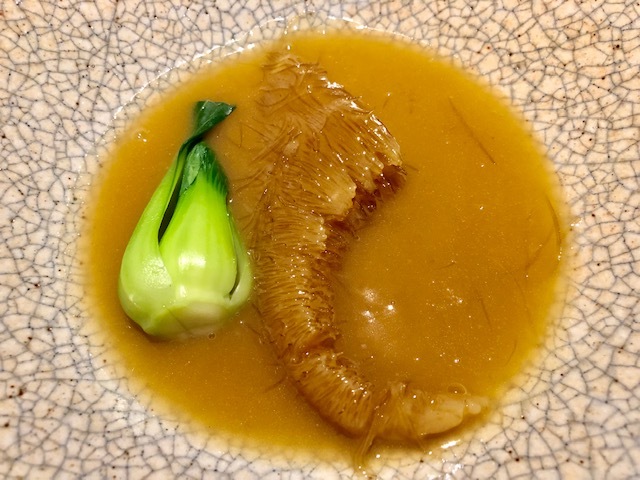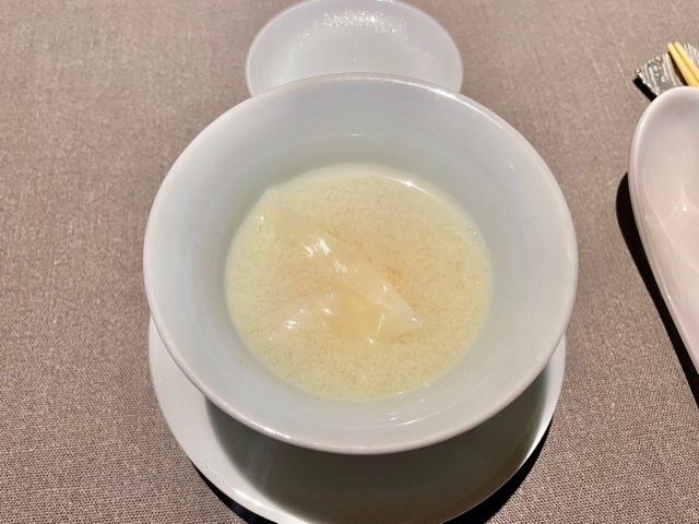 今夜は白木耳と杏仁と共に。「茶禅華」のスペシャリテは、この雉のスープ。通年で供されるスペシャリテには「店の顔」が存在すると私は思っています。このスープに関していうならば、美味しいということは勿論のことで、注目すべきは添えられてある食材でがらりと表情が変わるということ。今回の白木耳と杏仁は、夏の暑さで弱った肺に潤いを与えてくれる薬膳。ここに「茶禅華」のホスピタリティが宿っていると思っています。