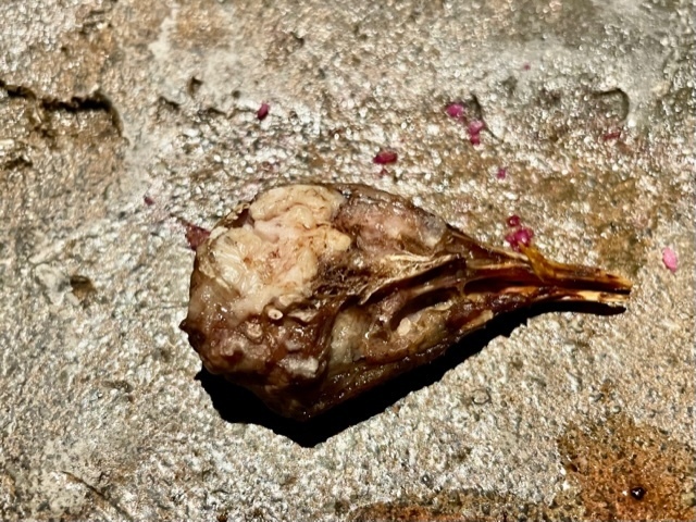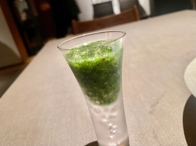 温かいものが個人的に刺さる美味しさで好きだったのですが、今夜は冷たいのが輝く美味しさ。福井県「黒龍酒造」の「ESHIKOTO梅酒」を2ミリくらい上からかけており、杏×梅の新たな美味しさを楽しめます。