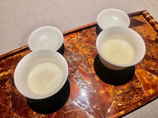今回は初のジャスミン茶を使った泡茶。生のプーアル茶でジャスミン茶を作っているそうで、泡茶でも香りが素晴らしい。