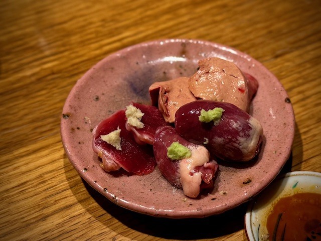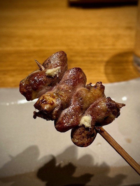 あえて攻めた火入れにしていただいたレバー。先端のプリプリとしたはつと舌に纏わりつくようなねっとりとしたレバー。まさに旨味が絡みつくような感じ。