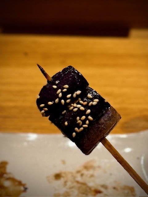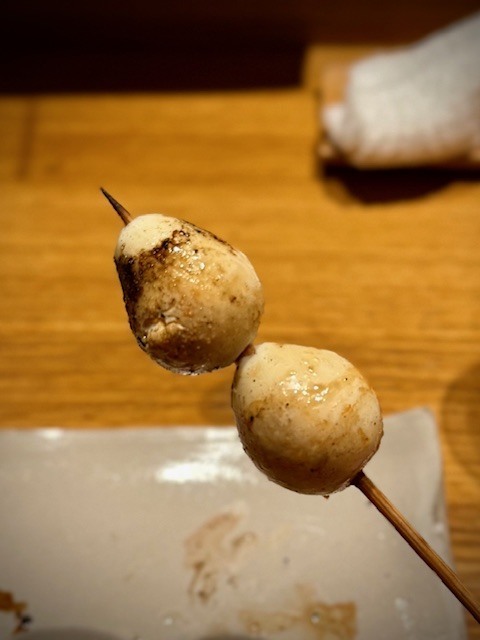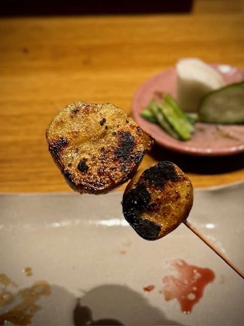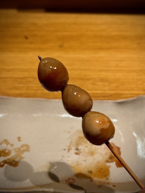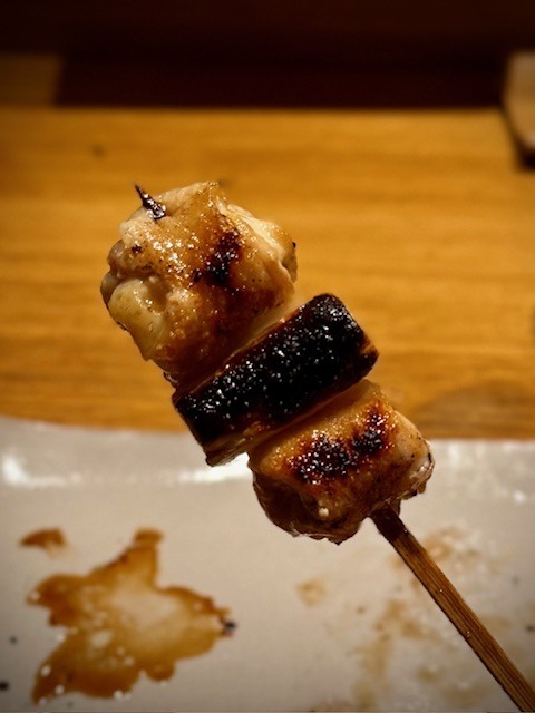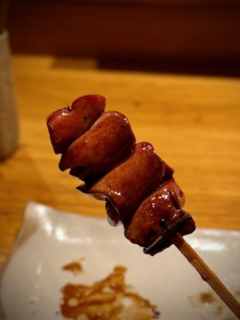 卵黄をたくさん付けていただき、串がしなるような重さ。プツンと弾ける卵黄が旨味の海となって、口の中に溢れます。美味しすぎる。