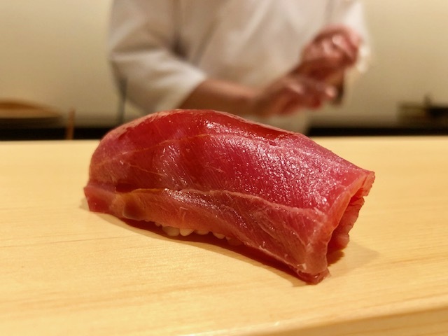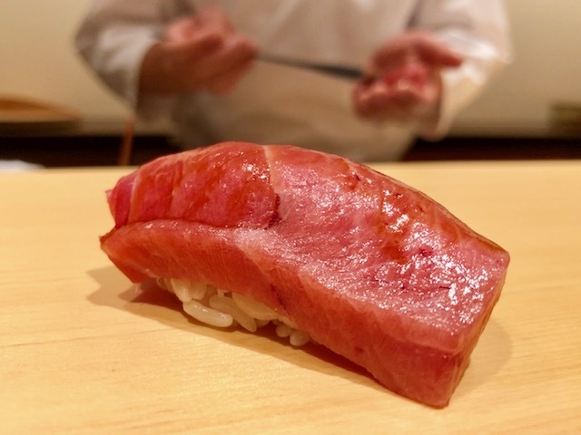 魚体が変わって、青森県大間産。素晴らしいの一言。香りもあり、筋が全くないのでスルッとした舌触りの中、とろけます。