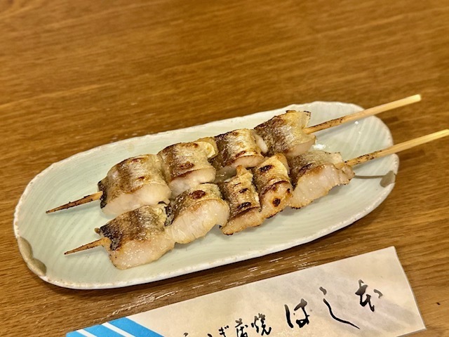 背びれと腹びれで肝を巻いて焼き上げた串。濃厚な旨味を更に濃厚な旨味で累乗するひと串。ひれの食感の中でプチッと弾けるような肝の旨味が実に美味しい。
