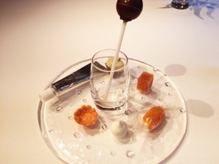 まず「ちょっとしたゲームをしましょう」と供されたのは、オリーブ。一つはグリーンオリーブ、もう一つはブラッドオレンジに漬け込んだオリーブとのこと。見た目で、ちょっと判ってしまいましたf(^^);