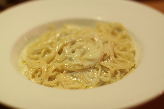 ブルーチーズの濃厚な匂いが、細いパスタと絡みあう。