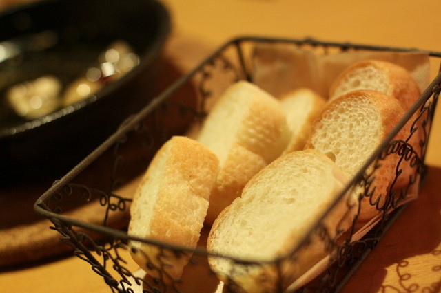 オイルには目立たない程度のガーリック。バケットを浸して食べると最高です。