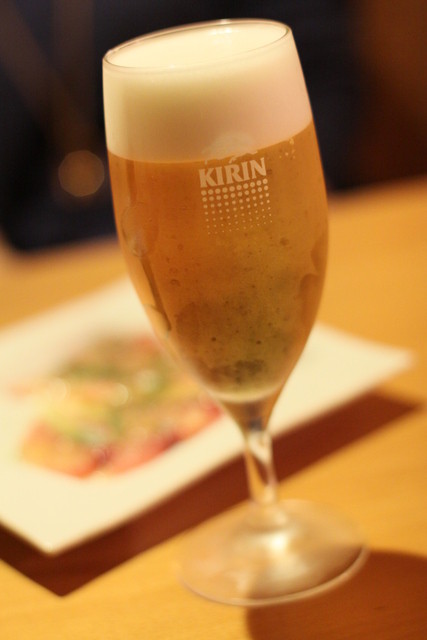 さてさて席に着き、まずはこちらの自信のメニューである、「かなり美味しい生ビール」を